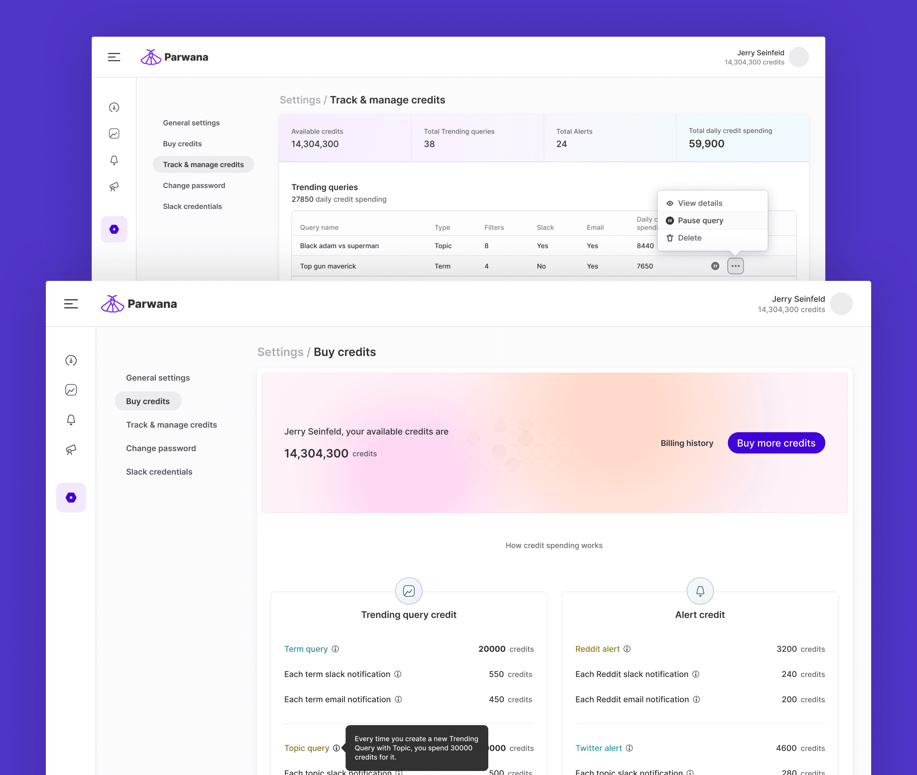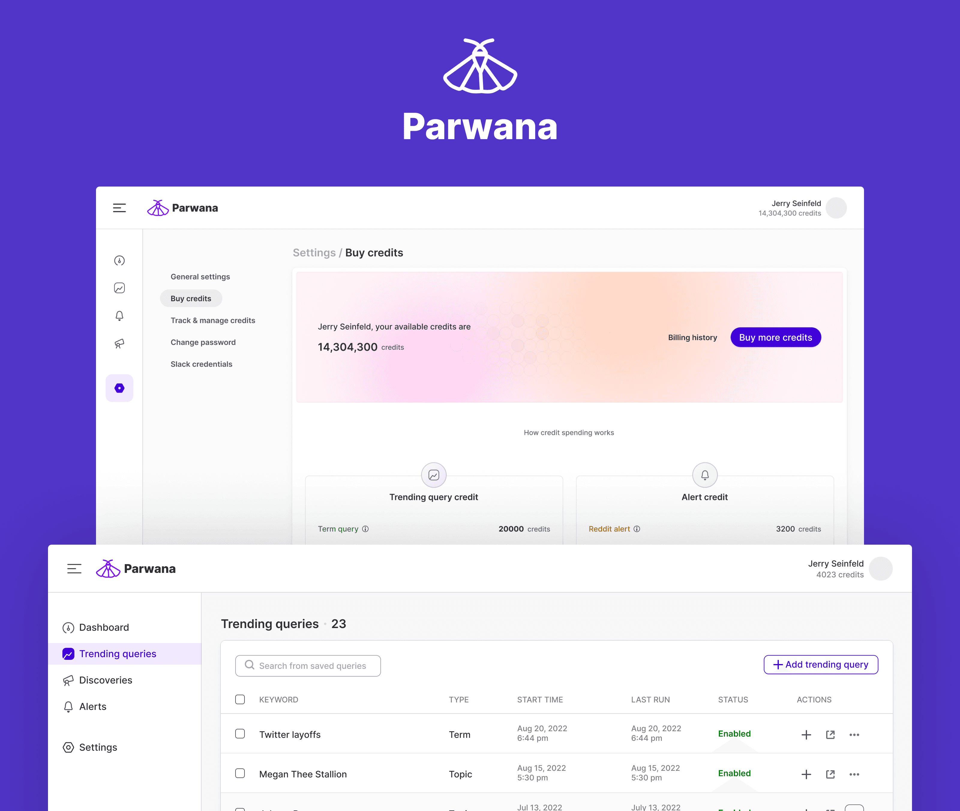 Parwana helps journalists, SEO experts, and researchers identify trending topics, queries, and related keywords in their respective fields through robust analytics and monitoring tools to help understand audience interests and optimize content strategy.